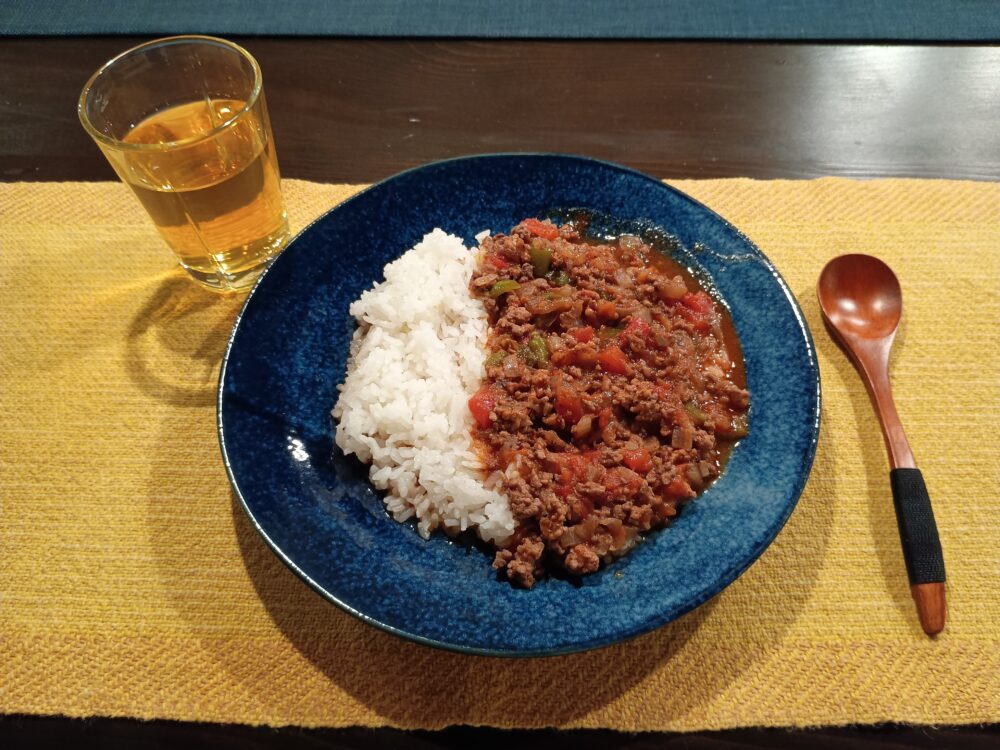 カレーのようにごはんにかけて食べると、とてもおいしくいただけます。チリペッパーの辛さとトマトソースのコクがごはんによく絡んで食が進みます。